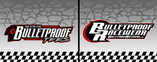 Bulletproof Tees - Custom Shirts,Hats and Mats provides custom race tees, embroidered or leather patch hats, custom fire suits, sublimated mats, custom tents, & more! Scott & Carrie go above and beyond to meet the customers' needs with the absolute best customer service you'll find in the industry! For more information check out their website at www.bulletprooftees.com or give them a call at 318.278.7191.